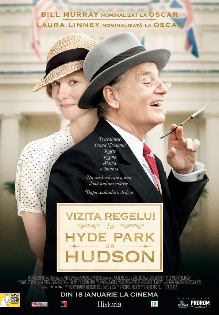 Focus Features şi Film4 prezintă HYDE PARK ON HUDSON, o producţie Free Range Film/Daybreak Pictures, în regia lui Roger Michell, cu Bill Murray, Laura Linney, Samuel West, Olivia Colman, Elizabeth Marvel, Elizabeth Wilson, Eleanor Bron şi Olivia Williams.