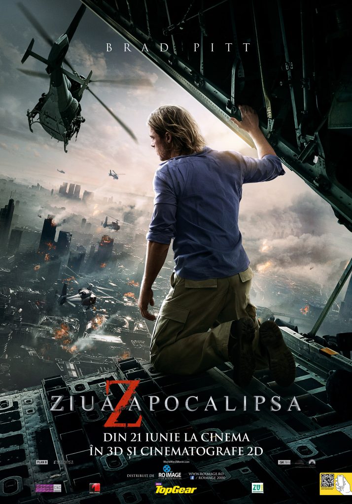 ZIUA Z: APOCALIPSA este un thriller SF al cărui protagonist este Gerry Lane (Brad Pitt), angajat la ONU, care e nevoit să străbată întreaga lume într-o cursă contracronometru pentru a opri o epdiemie care răstoarnă guverne, răscoală armate şi ameninţă să elimine rasa umană.
